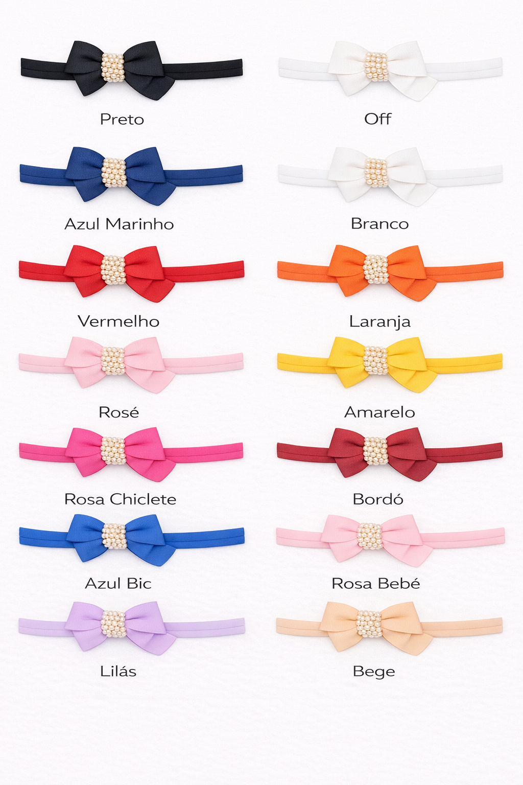 amarelo vivo, azul marinho, bege, bic, bordo, branco, laranja, lilás, off, preto, rosa bebe, rosa chiclete, rose, vermelho