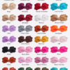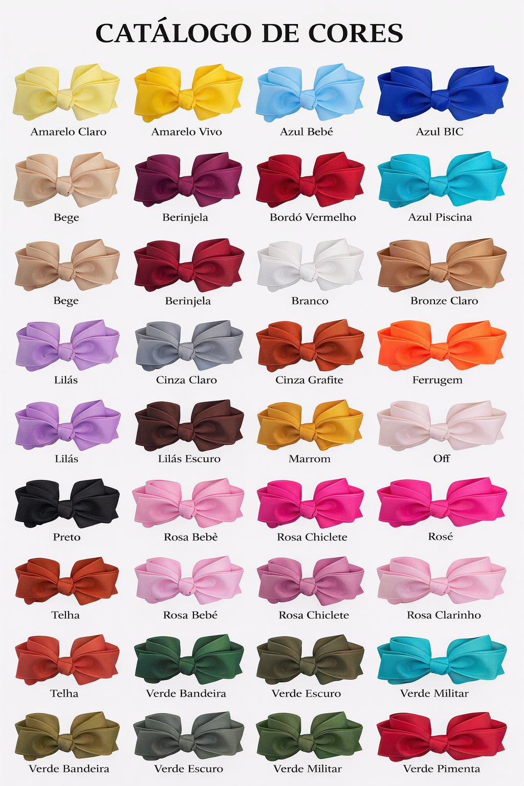 | Cores | amarelo claro, amarelo vivo, azul bebê, azul BIC, azul marinho, azul piscina, azul turquesa, bege, beringela, bordo, bordo vermelho, branco, bronze, bronze claro, caramelo, cinza, ferrugem, fucsia, grafite, laranja, laranja fluor, lilas, lilas escuro, marrom, mostarda, off, pinhão, pink, pink fluor, preto, rosa bebê, rosa chiclete, rose, rose antigo, rose clarinho, roxo, salmão, telha, terra, verde bandeira, verde escuro, verde militar, verde musgo, verde pimenta, verde turquesa, vermelho |