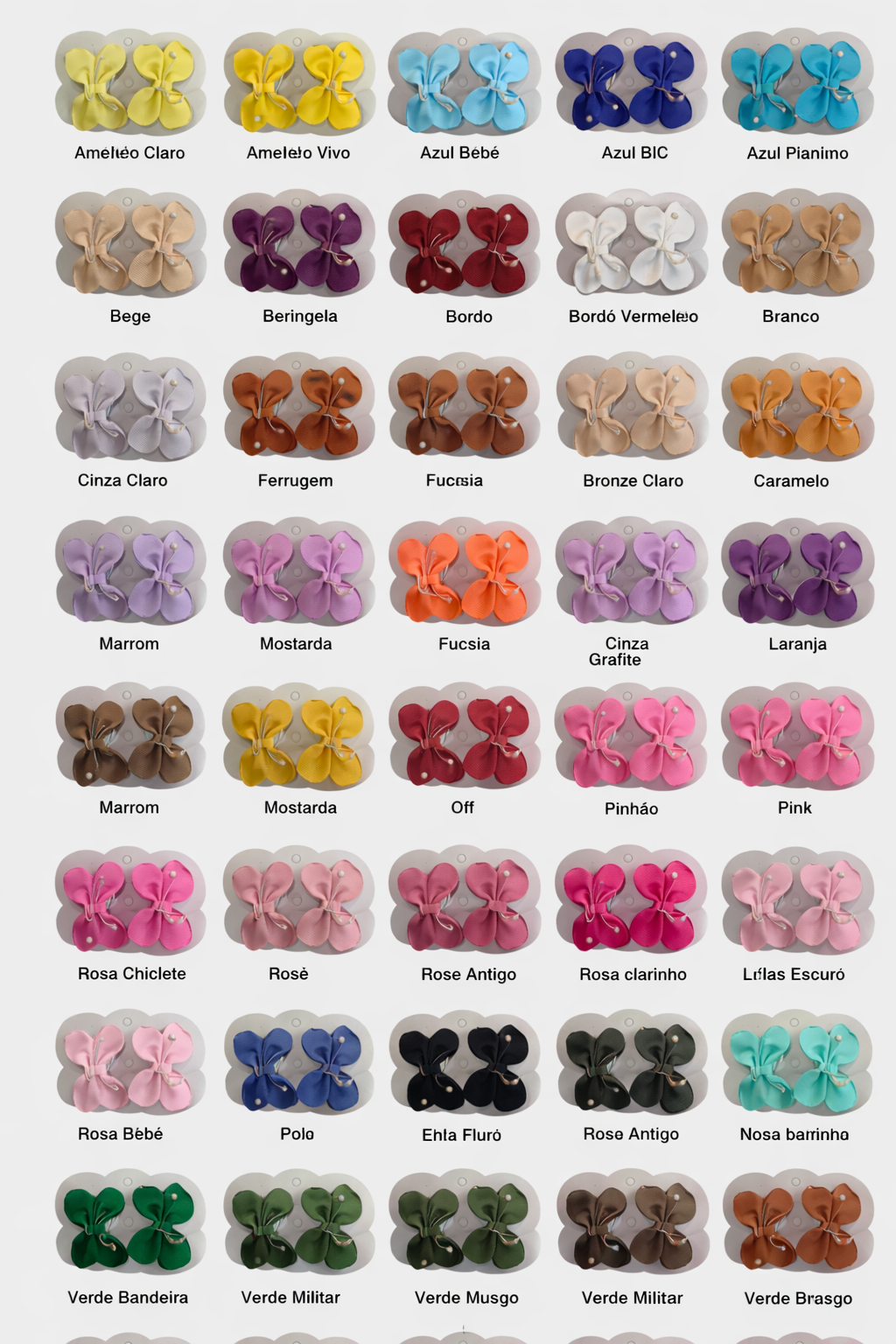 | Cores | amarelo claro, amarelo vivo, azul bebê, azul BIC, azul marinho, azul piscina, azul turquesa, bege, beringela, bordo, bordo vermelho, branco, bronze, bronze claro, caramelo, cinza, ferrugem, fucsia, grafite, laranja, laranja fluor, lilas, lilas escuro, marrom, mostarda, off, pinhão, pink, pink fluor, preto, rosa bebê, rosa chiclete, rose, rose antigo, rose clarinho, roxo, salmão, telha, terra, verde bandeira, verde escuro, verde militar, verde musgo, verde pimenta, verde turquesa, vermelho |