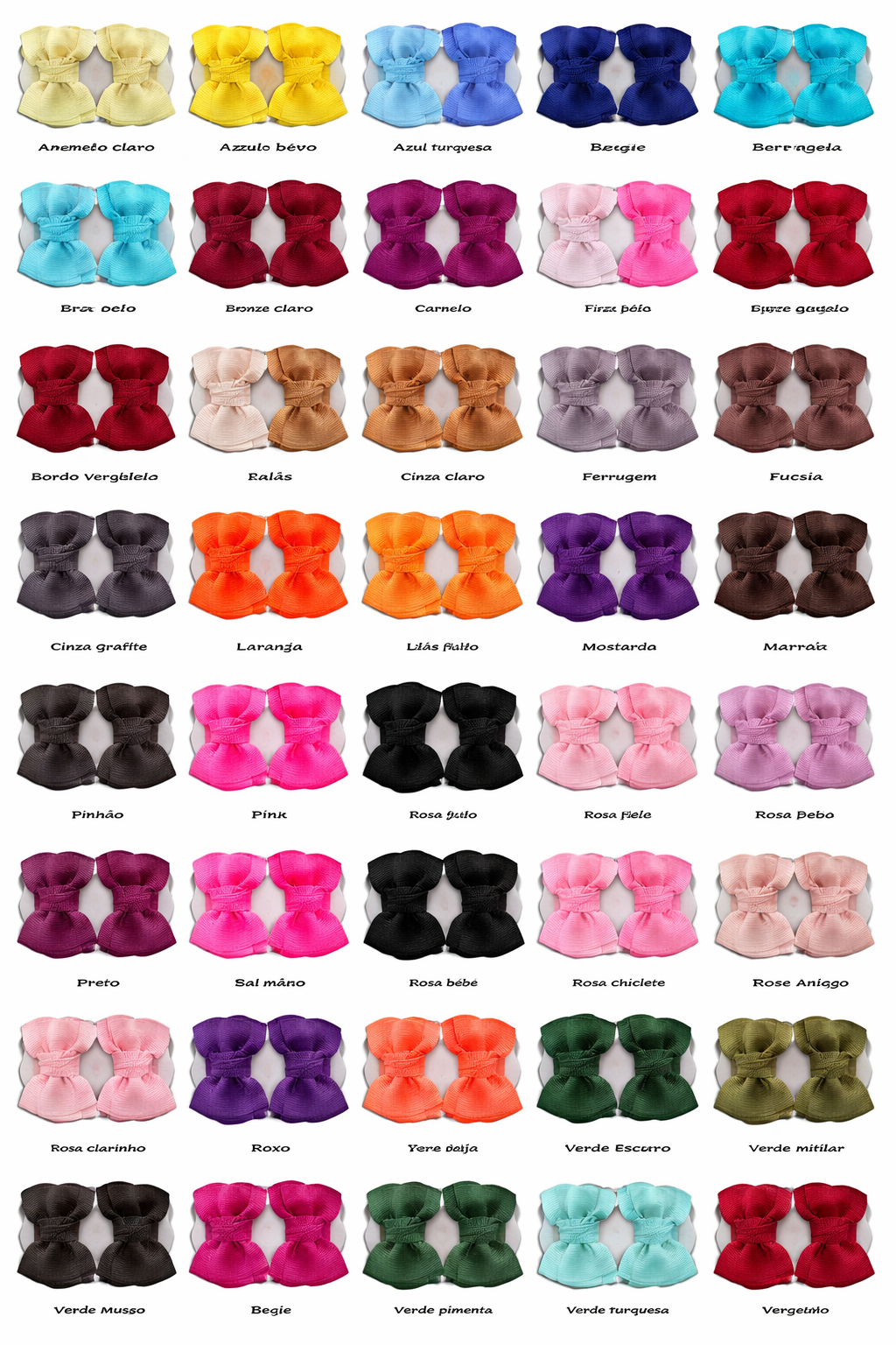 amarelo claro, amarelo vivo, azul bebê, azul BIC, azul marinho, azul piscina, azul turquesa, bege, beringela, bordo, bordo vermelho, branco, bronze, bronze claro, caramelo, cinza, ferrugem, fucsia, grafite, laranja, laranja fluor, lilas, lilas escuro, marrom, mostarda, off, pinhão, pink, pink fluor, preto, rosa bebê, rosa chiclete, rose, rose antigo, rose clarinho, roxo, salmão, telha, terra, verde bandeira, verde escuro, verde militar, verde musgo, verde pimenta, verde turquesa, vermelho