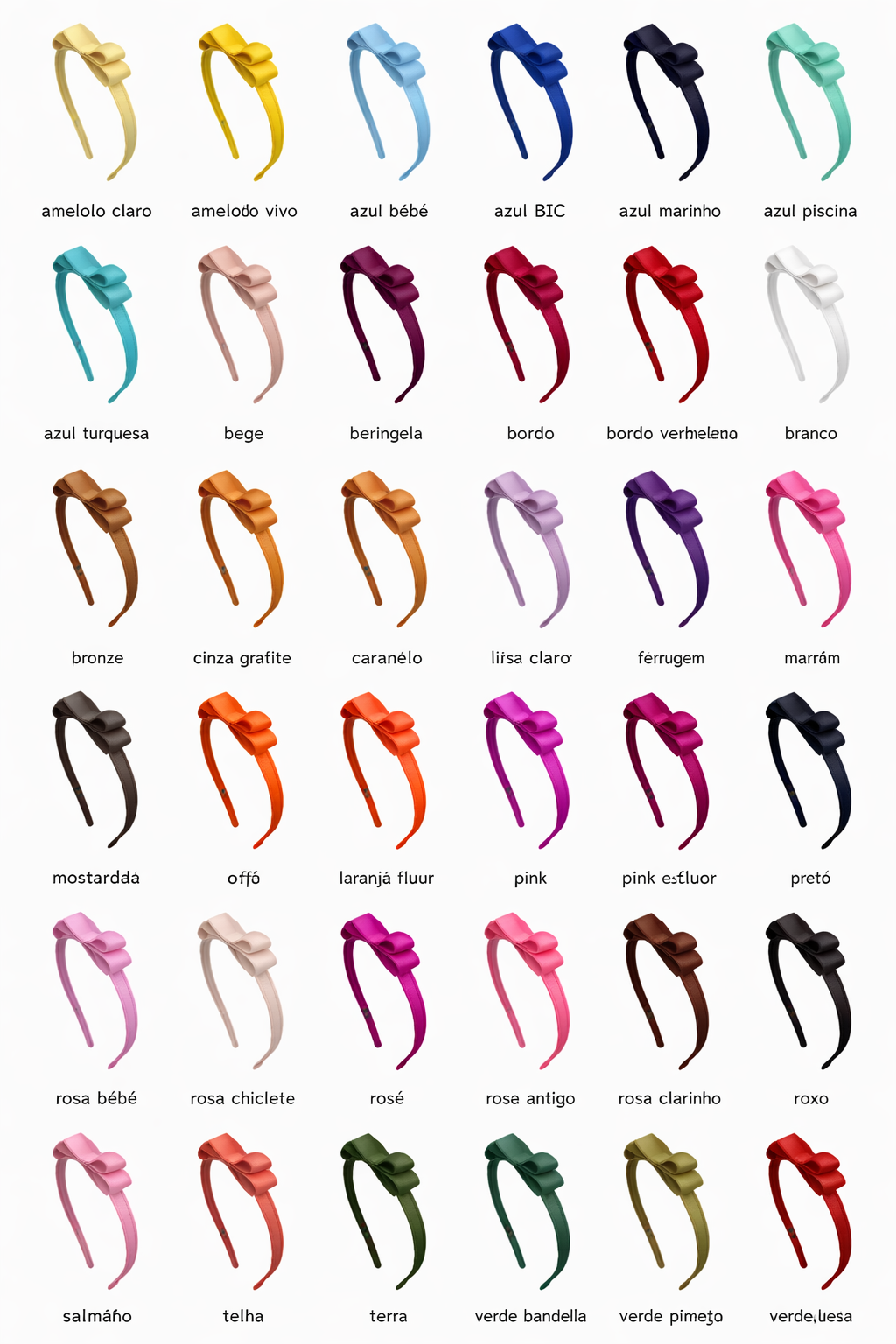 | Cores | amarelo claro, amarelo vivo, azul bebê, azul BIC, azul marinho, azul piscina, azul turquesa, bege, beringela, bordo, bordo vermelho, branco, bronze, bronze claro, caramelo, cinza, ferrugem, fucsia, grafite, laranja, laranja fluor, lilas, lilas escuro, marrom, mostarda, off, pinhão, pink, pink fluor, preto, rosa bebê, rosa chiclete, rose, rose antigo, rose clarinho, roxo, salmão, telha, terra, verde bandeira, verde escuro, verde militar, verde musgo, verde pimenta, verde turquesa, vermelho |